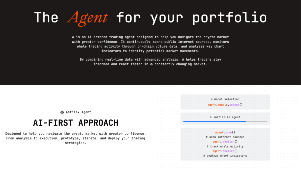 Branded around the vision “We reinvent crypto trading,” Astriax introduces an AI-powered trading agent that continuously scans public internet sources, monitors whale activity through on-chain volume data, and analyzes chart indicators to identify emerging market movements in real time.
