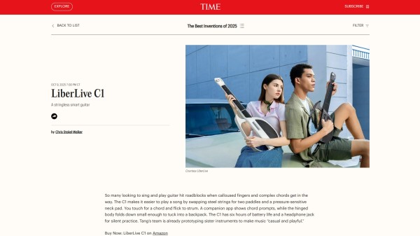 At first glance, LiberLive C1 may look like a futuristic guitar. By removing strings and rethinking the guitar from the ground up, LiberLive has created an instrument that’s faster to learn, more versatile to play, and easier to take anywhere. The C1’s breakthrough technology has established it as a category founder & leader, earning recognition from accolades like TIME’s Best Inventions 2025 and Rolling Stone’s Best of CES 2025.