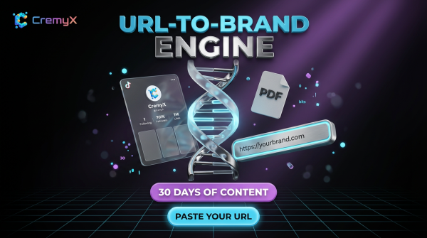 CremyX takes a fundamentally different approach through its brand DNA analysistechnology. Instead of starting with a blank prompt, CremyX begins by deeply understanding a brand through three import methods: