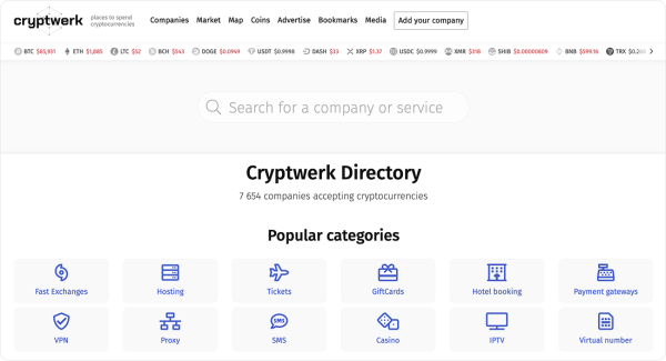 At the core of the platform lies Cryptwerk Directory, a structured crypto directory designed to catalog companies who accept crypto as a payment across multiple sectors.