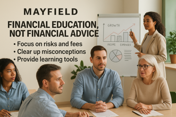 Financial education should never involve product promotion or investment persuasion. Mayfield embraces this boundary as a strength.