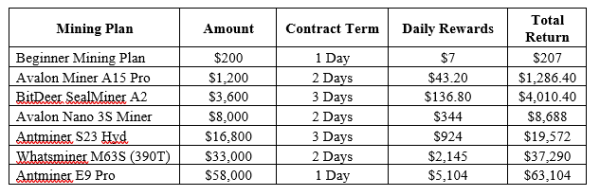 All that is needed of users is the account creation with the choice of a mining contract – no hardware installation is necessary.