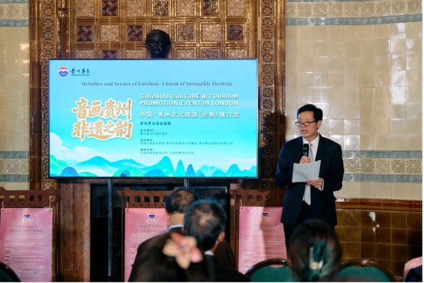 On behalf of Guizhou’s cultural and tourism sectors, Jin Zhongbin, deputy general manager of Guizhou Cultural and Performing Arts Industry Group Co., Ltd., delivered a speech. He stated that Guizhou is a magnificent land where nature and culture intertwine. It boasts stunning mountains and rivers, a diverse culture, and 18 indigenous ethnic groups who have created a unique and captivating ethnic culture. He expressed the hope to deepen cooperation with the U.K. in areas such as cultural performances, heritage protection, and tourism investment, and to jointly explore innovative paths for the integration of culture and tourism.