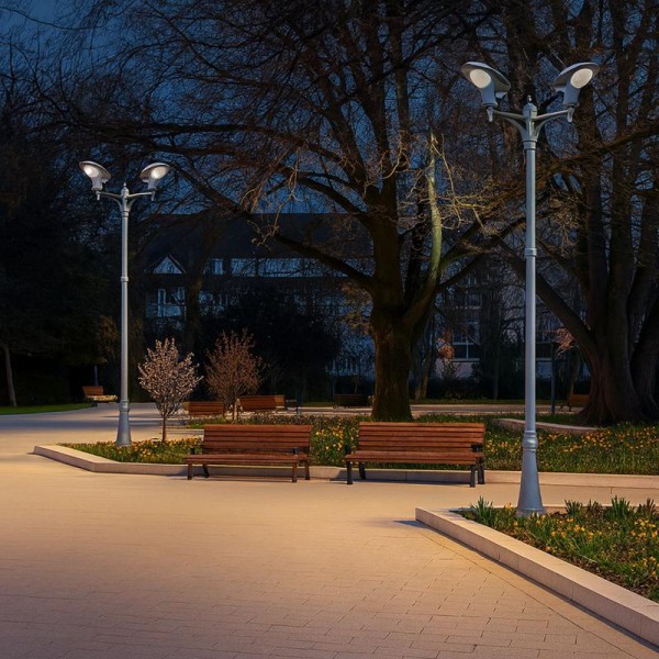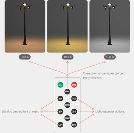 For homes, parks, and estates, Dawn Lighting offers the 3-Light Solar Garden Pole Light Fixture. It has dusk-to-dawn automation. It turns on only when needed. The system charges in 3–5 hours and can run 6, 8, or 12 hours per night. The 2.5-meter post provides wide-area coverage. Durable die-casting aluminum and PC parts deliver IP65 protection. The look is classic and refined. It suits driveways, walkways, and patios. This is a strong choice when you need a Solar Street Light For Garden or a premium Garden Solar Street Light that also saves energy.