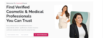Professionals apply to be verified through the platform. CosmediCheck independently checks their qualifications, training credentials, and insurance documentation against its verification framework of more than 30 standards. Professionals who meet the required benchmarks receive a verified status that is displayed publicly on their CosmediCheck profile.