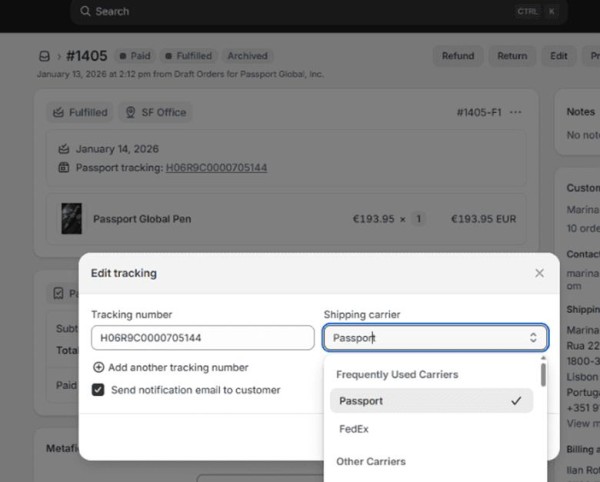 In addition, Passport is now a listed carrier within Shopify, enabling merchants to view international shipping performance directly in the Shopify admin, trigger workflows and customer communications based on Passport tracking events, and deliver a more controlled post-purchase experience—without relying on disconnected tools or manual reporting.