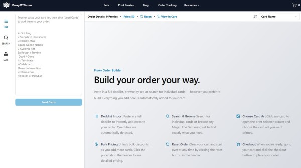 ProxyMTG.com is launching with a focus on a smoother, more scalable ordering experience—one designed for real deckbuilders. The platform is built to support a wider range of use cases than traditional “small selection” proxy offerings, including: