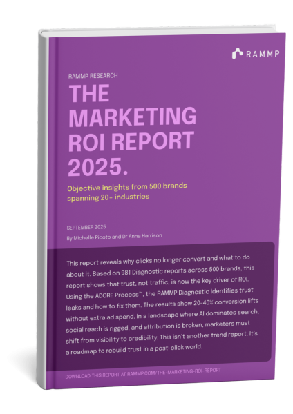 In 2025, RAMMP’s research says, the marketing playing field shifted dramatically. Organic reach was eroded by AI-driven content saturation, the cost of paid media surged while performance faltered, and confidence in attribution collapsed with only 17 % of executives trusting its data. Against these pressures, RAMMP argues marketing ROI is no longer a function of clicks and impressions alone; trust, behavioural architecture and conversion psychology have become the central levers of value.