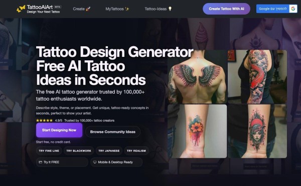 TattooAiArt.com — free AI tattoo design generator, trusted by 100,000+ users worldwide