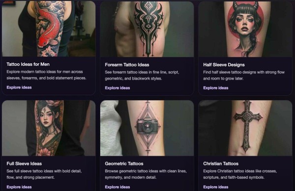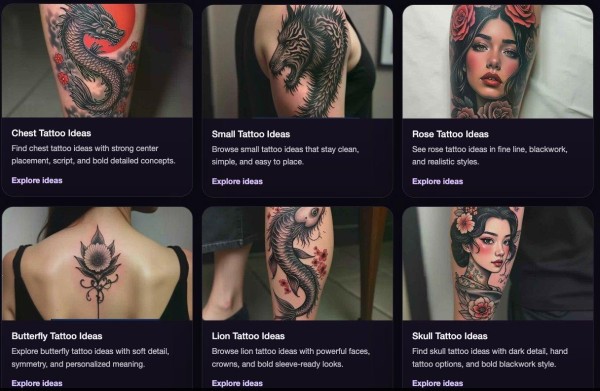 What struck me most when I started exploring the platform was the depth of the idea library. TattooAiArt.com is not just a generator — it is also a structured gallery of tattoo styles, placements, and meanings. There are dedicated sections for forearm tattoo ideas for men, sleeve tattoo designs, skull tattoos, koi dragon tattoo meanings, rose tattoos, geometric designs, small tattoos, and dozens more.