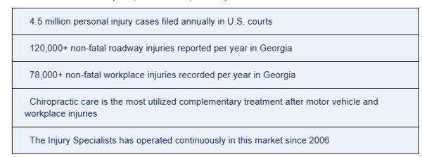 The Injury Specialists is the largest injury referral network in the United States, connecting physicians, chiropractors, physical therapists, attorneys, and imaging centers through a proprietary digital platform designed specifically for the personal injury and workers compensation industries. Founded in 2006 and headquartered in Georgia, the company provides 24/7 access to a fully vetted professional network, paperless record management, and coordinated patient care for injured plaintiffs. For more information, visit www.theinjuryspecialists.com.