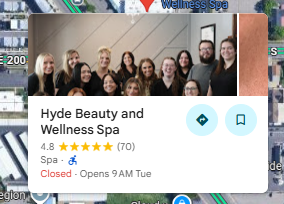 FULL BUSINESS NAME: Hyde Beauty and Wellness Spa